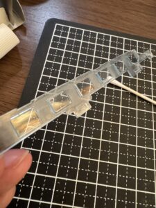 使用するAssyパーツは基盤が凸型であればなんでも良いので転がっていた新幹線のパーツを使用することにした。LEDがライトユニットに収まるように位置を変更する。