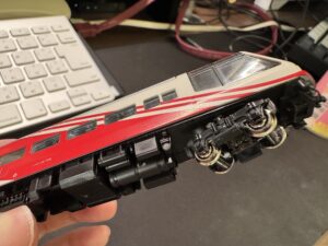特に動力台車の清掃はホコリが必ずと言っていいほどギアの軸に巻きついているので、バラバラにしてしっかり除去するのと、ユニクリーンオイルを塗布して動きを良くしておくと良い。